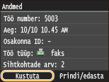 Kui soovite edasisaadetavaid dokumente ise uurida, saate määrata seadmes edasisaadetud dokumentide printimise või vaid nurjunud edasisaatmisega dokumentide printimise.