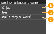 <Faksi SA-tulemuste aruanne> või <E-posti/I-faksi/faili SA-tulemuste aruanne>