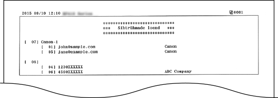 Printides aadressiraamatu loendi saate kontrollida aadressiraamatus salvestatud sihtkohtade loendeid nagu <Koodvalimine>, <Lemmikud> ja <Rühmavalik>.