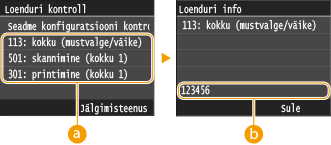 <Seadme konfiguratsiooni kontroll> võimaldab teil vaadata masinale installitud lisaüksusi.