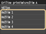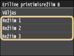 Kui probleemi ei saa lahendada hoolimata antud sead määramisest, siis valige <Eriline printimisrežiim D> kuni <Sees>. Eriline printimisrežiim D
