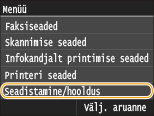Kõik reguleerimise ja hooldamise sätted on esitatud lühikese kirjeldusega. Vaikeseaded on tähistatud ristiga (