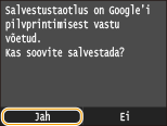 Seadme saate registreerida ka mobiilseadmes või brauseriga Google Chrome*. Enne registreerimise lõppu kuvatakse seadme näidikul alljärgnev kinnituskuva. Registreerimise lõpetamiseks puudutage nuppu <Jah> .