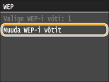 Valige muudetav WEP-võti (1–4) ja vajutage klahvi.