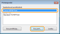 Valige loendist [Saadaolevad porditüübid] väärtus [Canon MFNP Port] ja seejärel klõpsake klahvi [Uus port].