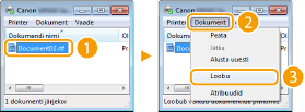 Valige dokument kuvalt <Paljun.-/prinditöö olek>