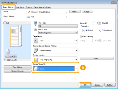 Kui prindite mitmeleheküljeliste dokumentide komplekte, valige valmiskomplektide printimiseks järjestatud lehekülgedena valik [Collate] (Sortimine). See funktsioon on kasulik koosolekute või esitluste jaotusmaterjalide ettevalmistamisel.