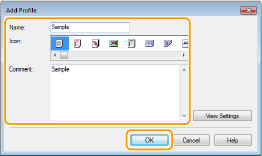 Sisestage profiili nimi lahtrisse [Name] (Nimi), valige ikoon ja klõpsake [OK].