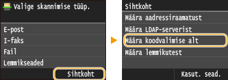 Ühiskausta määramine salvestuskohana Aadressiraamatu sihtkohtade salvestamine tarkvara Remote UI (Kaugkasutajaliides) kaudu |