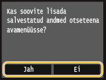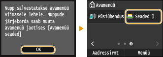 Kui te valite <Jah>, siis ilmub teade. Lugege teadet ja vajutage seejärel <OK>. Salvestatud sätete kombinatsioon lisatakse Avamenüü ekraanile kiirklahvina.