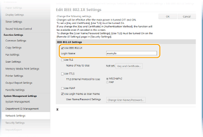 Juhtpaneeli kasutamineSaate lubada või keelata ka IEEE 802.1X-i autentimise menüüst <Menüü> menüüst Avamenüü . IEEE 802.1X seaded