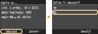 Dodirnite <Odustani> na zaslonu koji se prikazuje za vrijeme kopiranja