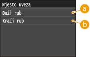Kada ovu stavku postavite na jednu od mogućnosti <Način 1> na <Način 3>, <Posebni način ispisivanja A> automatski se postavlja na <Isključeno>. Posebni način ispisivanja A