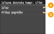 Odaberite <Izlaz> ili <Prikaz pogreške>