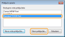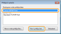 Odaberite [Canon MFNP Port] u odjeljku [Dostupne vrste priključaka], a zatim kliknite [Novi priključak].