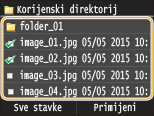 ![]() ![]() Kada odaberete <Datum/vrijeme (uzlazno)> ili <Datum/vrijeme (silazno)>, datoteke se sortiraju na temelju datuma i vremena izmjene datoteka.