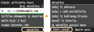 Prije korištenja te značajke potrebno je registrirati odredišta u adresaru. Registriranje u adresaru