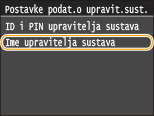![]() Zadana oznaka upravitelja sustava i PIN su „7654321”. Preporučuje se da promijenite ovu postavku radi povećanja razine sigurnosti.