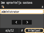 Unesite najviše 32 znaka kao naziv upravitelja sustava, a zatim dodirnite <Primijeni>.