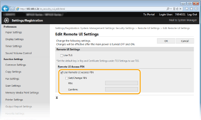 Potvrdite okvir [Use Remote UI Access PIN] i postavite PIN.