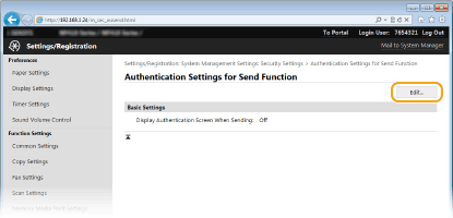 [Authentication Settings for Send Function].