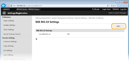 Provjeru autentičnosti IEEE 802.1X možete omogućiti ili onemogućiti u izborniku <Izbornik> na zalonu Početni zaslon. Postavke IEEE 802.1X