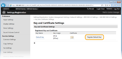 Desno od para ključeva koji želite koristiti za provjeru autentičnosti klijenta kliknite [Register Default Key].