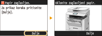 Prilikom uklanjanja zaglavljenog papira nemojte isključivati uređaj.Isključivanjem uređaja brišu se podaci koji se ispisuju. Osobito pripazite kada primate faksove.