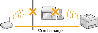 Ima li između uređaja i bežičnog usmjerivača zapreka kao što su zidovi?