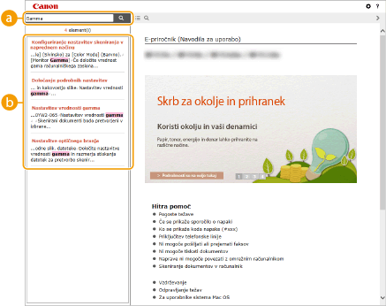 Kliknite, da odprete informacije o branju E-priročnik, iskanju po priročniku in druge informacije.