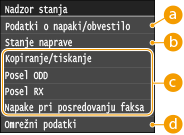 Stanje postopkov kopiranja/tiskanja/pošiljanja/sprejema