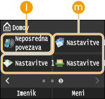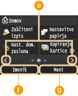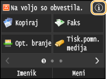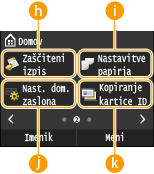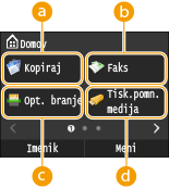 Bližnjični gumbiPrikažejo »Priljubljene nastavitve«, ki so registrirane za kopiranje, faksiranje in skeniranje. Dodajanje gumbov na zaslon Domov