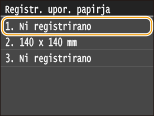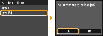 Izberite registrirano velikost, ki jo želite izbrisati.