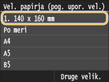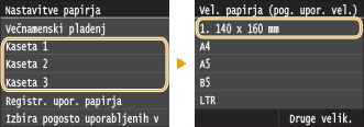 Izbiranje velikosti papirja za kaseto za papir
