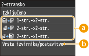 Dve strani dokumenta lahko kopirate na obe strani papirja. Obojestranski dokument lahko kopirate obojestransko ali na dve posamični strani.