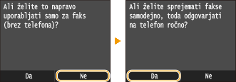 Tapnite <Da> ali <Ne>, da izberete način prejemanja.