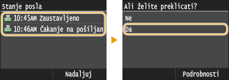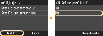 na upravljalni plošči. Pošiljanje faksov lahko prekličete tudi po preverjanju stanja faksa.