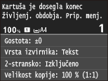 Prikazana preostala količina tonerja v kartuši se lahko razlikuje od dejanske količine, zato jo uporabljajte samo kot vodilo.