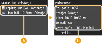 ![]() <Status kop./tiskanja>Prikaže seznam dokumentov, ki so v fazi pošiljanja, kopiranja ali čakajo na obdelavo.