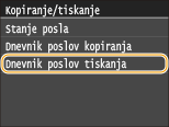 Če je možnost <Prikaz dnevnika poslov> nastavljena na <Izključeno>, ne morete preveriti dnevnika tiskalnih opravil. Prikaz dnevnika poslov