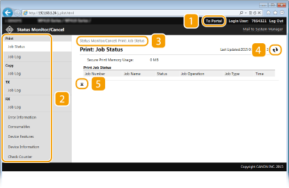 Prikaže stanje trenutno tiskanih dokumentov in zgodovino tiskanja, kopiranja, pošiljanja in sprejemanja dokumentov. Preverite lahko tudi stanje naprave.