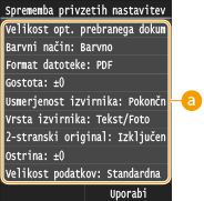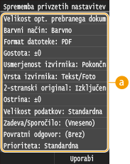<Meni>  <Nastavitve optičnega branja>  <Nastavitve datoteke>  <Sprememba privzetih nastavitev>  Izberite nastavitev  Spremenite privzeto vrednost izbrane možnosti  <Uporabi>