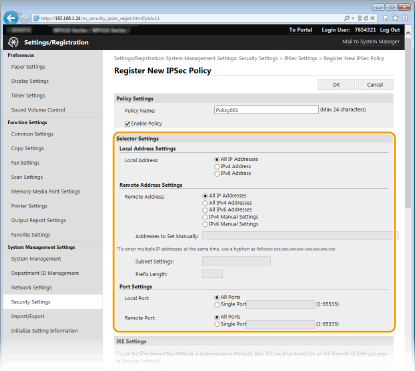 Določite nastavitvi [Valid for] in [Authentication]/[Encryption]/[DH Group].