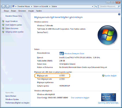 [Bilgisayar Adı] sekmesinde [Değiştirilebilir] seçeneğine tıklatın.