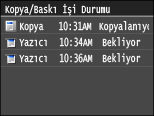 Kopyalama/yazdırma/gönderme/alma işlerinin durumu