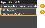 ) öğesine bastığınızda <Sayacı Kontrol Et> ekranı görüntülenir. Bu ekranda, çıktıların sayaç değerlerini ve makinenin ser numarası ile makine yapılandırmasını görüntüleyebilirsiniz.