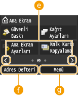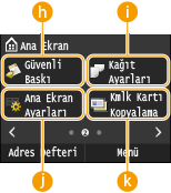 <Ana EkranAyarları>Ana Ekran düğmelerinin görüntülenme sırasını değiştirmenize imkan verir. Ana Ekran Ekranını Özelleştirme
