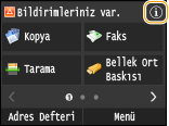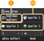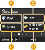 Kısayol düğmeleriKopyalamak, Fakslamak ve Taramak için kaydedilen "Sık Kullanılan Ayarlar"ı görüntüler. Düğmelerin Ana Ekran Ekranına Eklenmesi