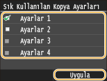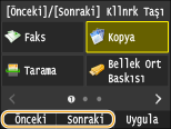 Kaldırmak istediğiniz düğmenin onay kutusunu temizleyin ve ardından <Uygula> öğesine dokunun. Kayıtlı düğmesini kaldırdığınızda, Ana Ekran ekranında düğmenin görüntülendiği yerde bir boşluk belirir. Gerekiyorsa boşluğu silin.