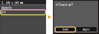 Silmek istediğiniz kayıtlı boyutu seçin.